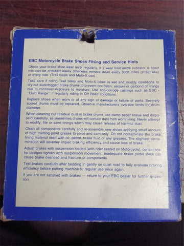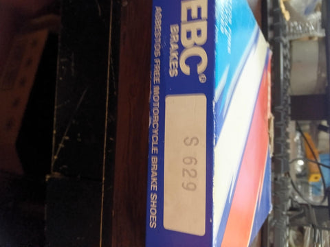 This is a brand-new set of EBC Brakes Standard "Plain" Series Brake Shoes (Part # EBC629 / 7605-974). These premium shoes are manufactured using high-pressure die-cast aluminum platforms with bonded brake linings. They are a significant upgrade over standard budget shoes, offering smoother engagement and better thermal stability.