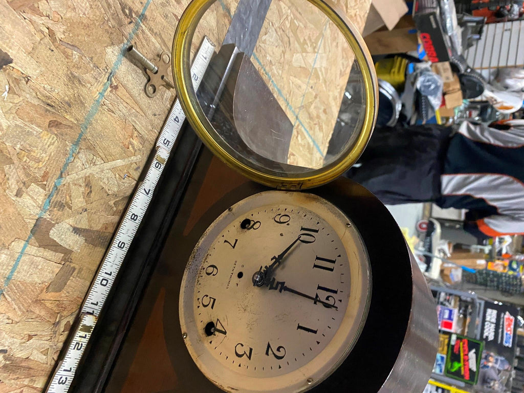 wound it up  works and chimes when needle hits 12.   told it needs cleaned & oiled  nice survivor! amazing still has key! wasnt overwound (when we got it)