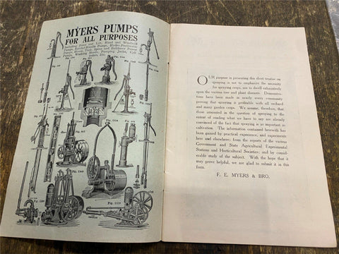 1900 antique F.E. Myers Spray Pumps catalog Agriculture Farm Advertising Sign!antique F.E. Myers & Bro. Myers Spray Pumps catalog, likely from around 1900.