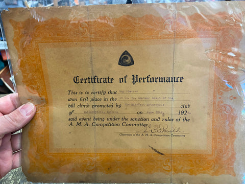 1929 AMA Hill Climb Ward Trophy Harley Flathead JD RL Indiana Display Antique Vintage! Really cool piece! he won 1st place in the hill climbs!