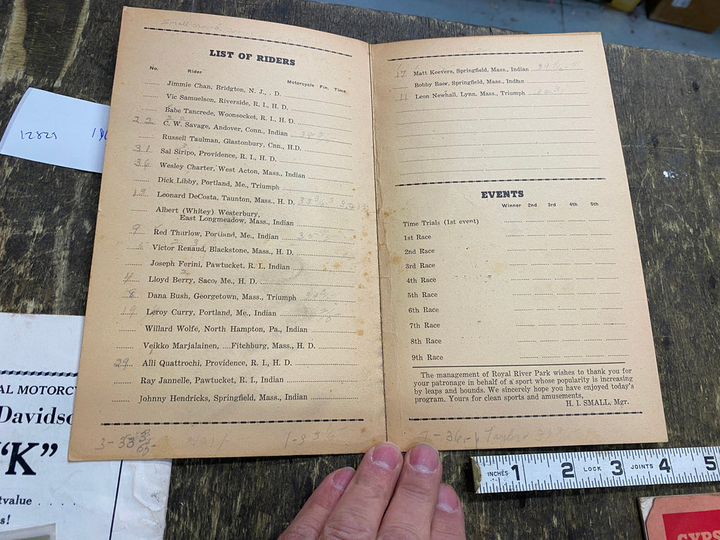 1940's Racing Program Royal River Park Triangle Motorcycle Club Vtg Harley India yes its a real one!! Great Piece of motorcycle history!!! selling off some really cool pieces! check out our other listings!!
