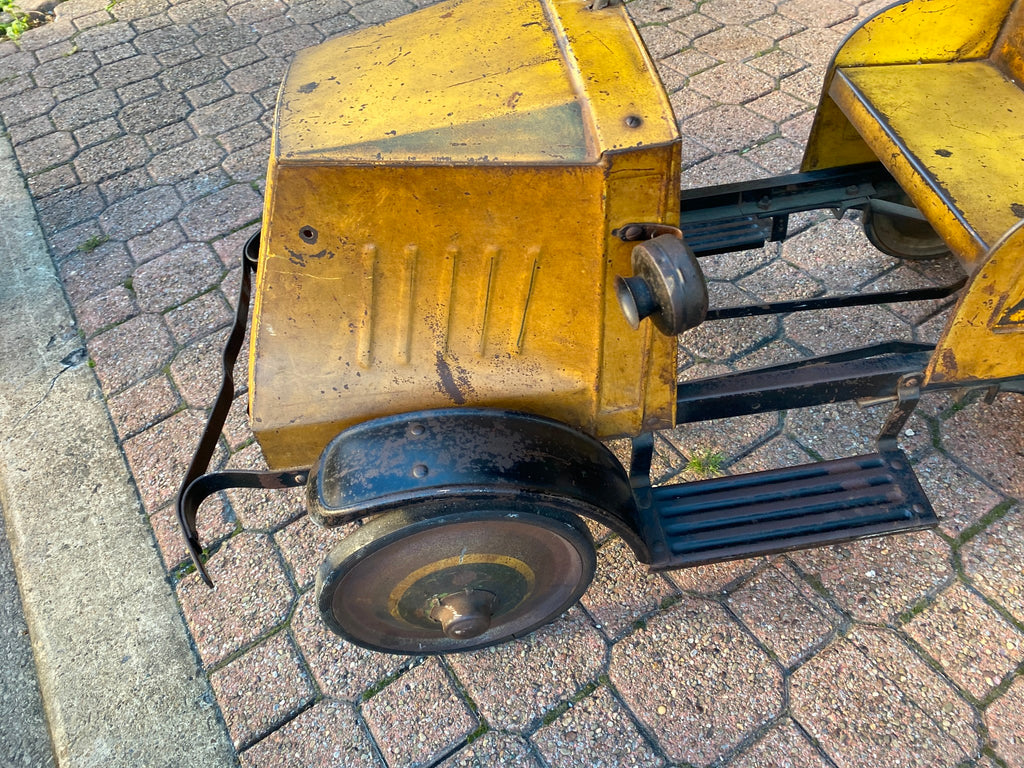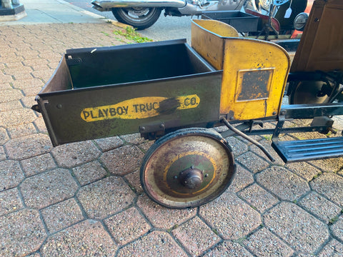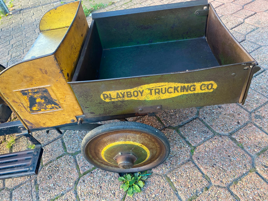 30's Steelcraft Pedal Car MACK DUMP TRUCK Orig Paint Survivor Vtg Toy PLAYBOY TRUCKING ON SIDE! ABOUT 100 YEARS OLD Almost impossible to find in any condition! have a lifetime collection of pedal cars listing as we can! some nice unrestored ones!!