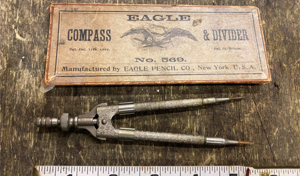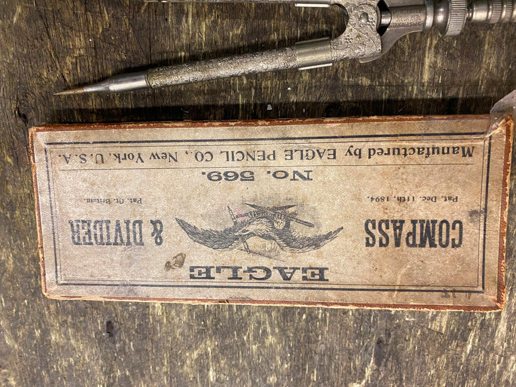 Antique 1894 Eagle Compass & Divider 569 Pencil Co NY Original box cover Engraved tool love these old tools look at the quality & detail on it! selling as pictured.