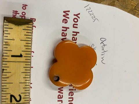 The pin is made of a brass-toned metal center mounted on a four-lobed, swirled catlin