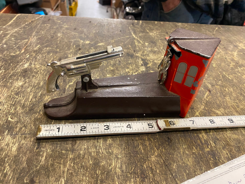 Coin Bank Western Wild West Cowboy Gun Shooting Mechanical VTG Astro Toys Works! Great old skool toy! Great Display!!