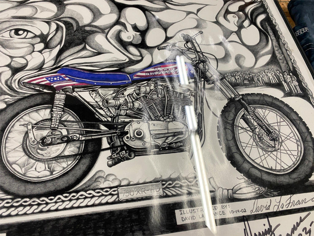 Other works: LaFrance also creates other art, including a custom-framed Evel Knievel piece sold in 2025. His other art includes designs for t-shirts david lafrance signed this one in 2015 also did a matching T-shirt & a comic book!