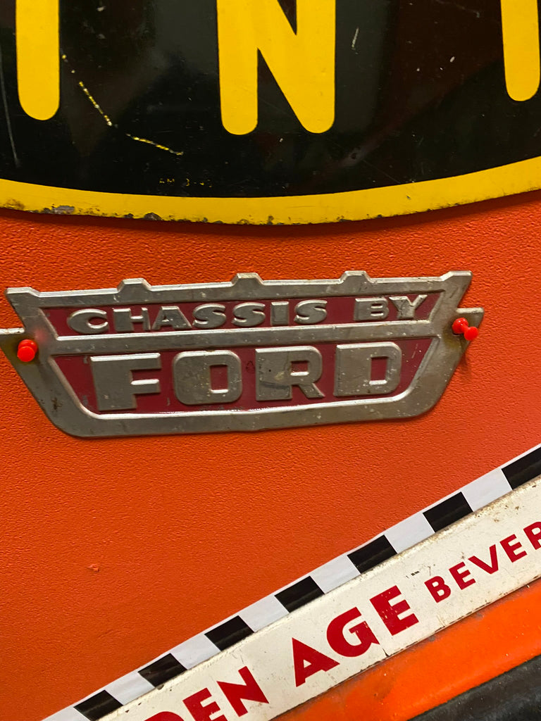 Ford Truck Car CHASSIS BY FORD Metal Vtg Emblem Plate 1940's Original Trim Badge.