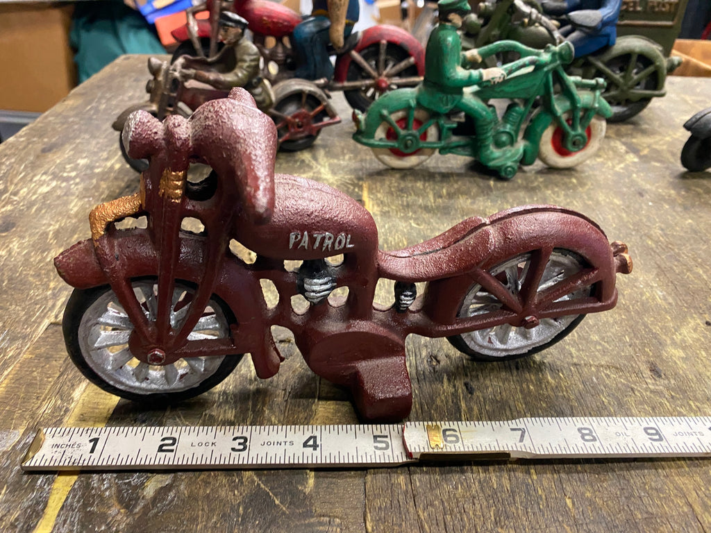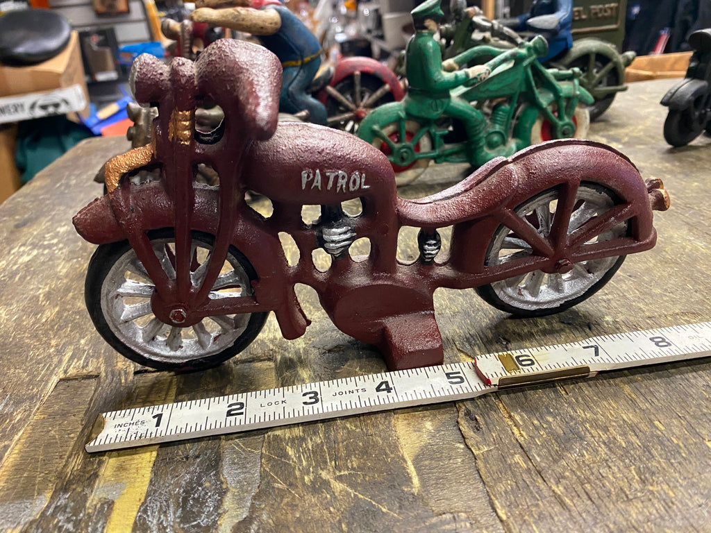 Harley Patrol Motorcycle Police Cast Iron Toy Hubley Collector Vtg believe its a repop, hubley or repop selling off a bunch of cast iron motorcycle toys from an estate! some nice stuff!!