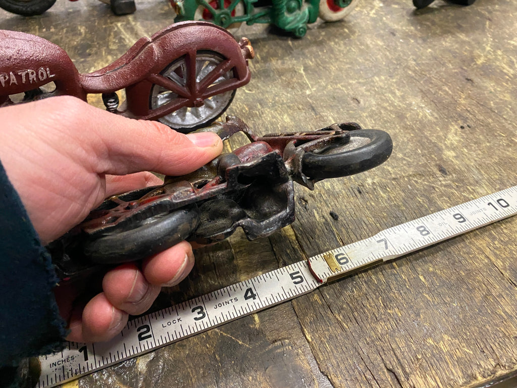 Harley Patrol Motorcycle Police Figurine Cast Iron Toy Hubley Collector Vtg believe its a repop, hubley or repop selling off a bunch of cast iron motorcycle toys from an estate! some nice stuff!!