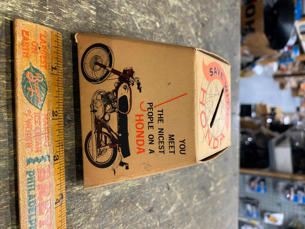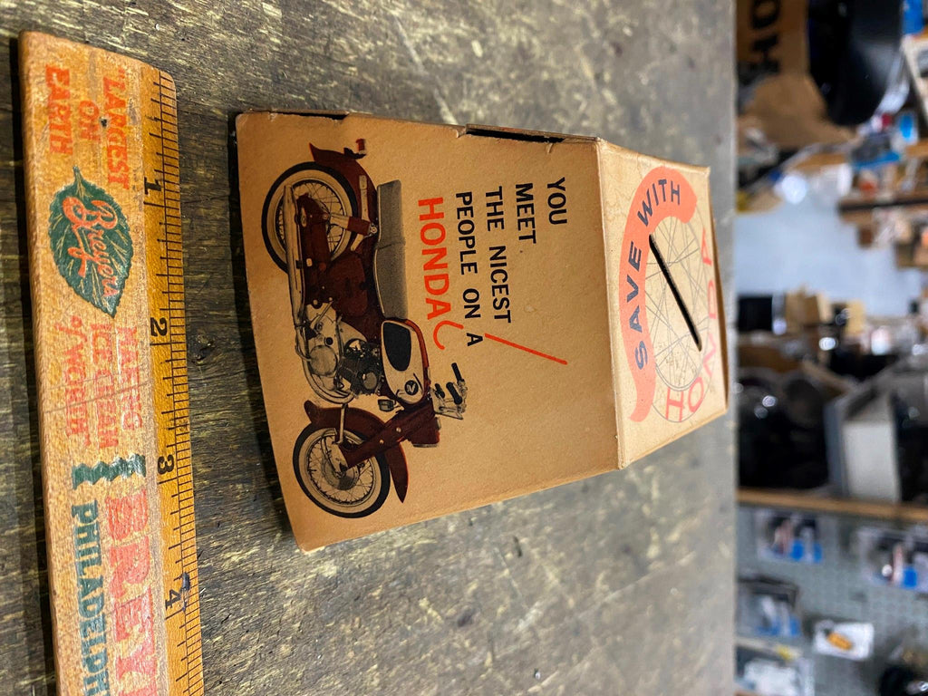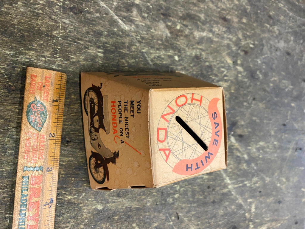 honda coin Bank Vtg Advertising Dream Scrambler 60's Sign Meet the nicest people on a honda early 60's advertising slogan! Great Piece for the honda collector!!! only one Ive ever seen