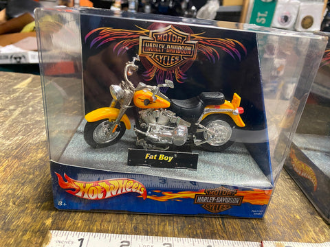 Hot Wheels Harley-Davidson Fat Boy Motorcyle 1/18 Scale 2001 Display Box NIB! have a deuce listed also