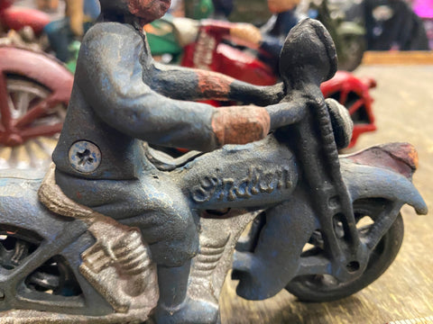 Indian Patrol Motorcycle Police Figurine Cast Iron Toy Hubley Champion Blue 30's