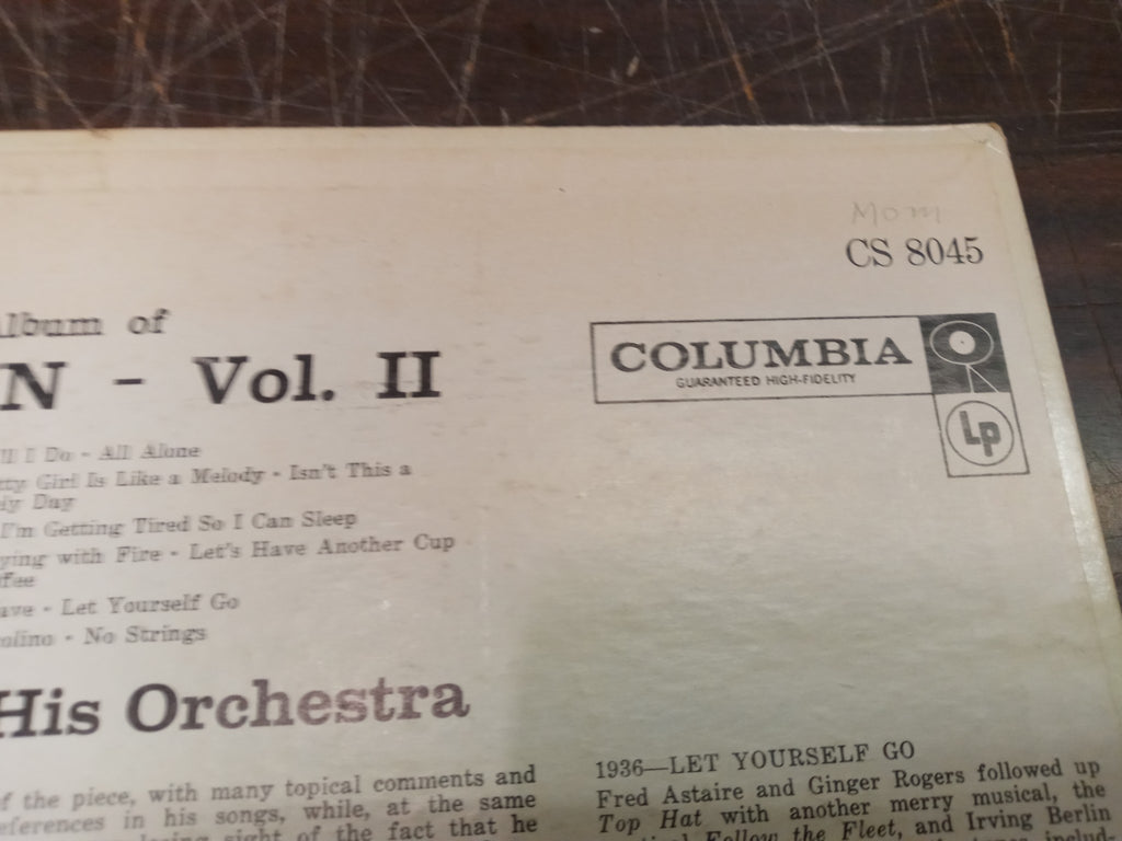 Irving Berlin Frank DeVol Orchestra CS8045 & CS8044 Columbia Record Album Vinyl