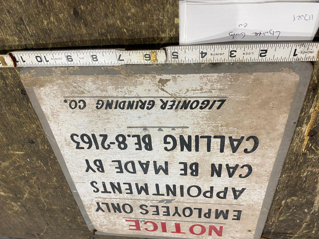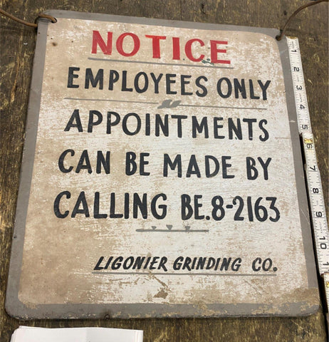 ligonier grinding company PA Employees only Vtg Sign Antique Advertising 40's! 12x11 Cool old sign love the old phone numbers! great mancave stuff! wonder where it was at in ligionier??