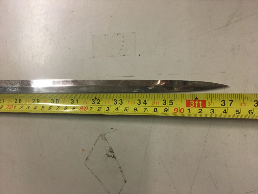 38" WITH SHEATH, 37" HANDLE TO TIP OF BLADE, AND 30" BLADE ALONE.