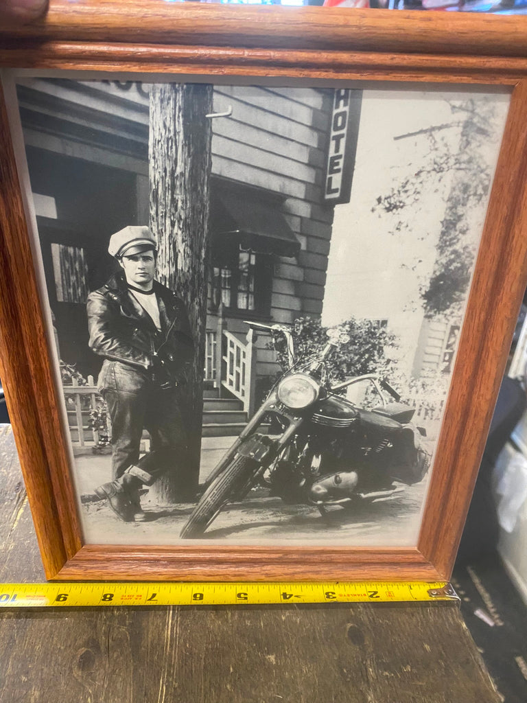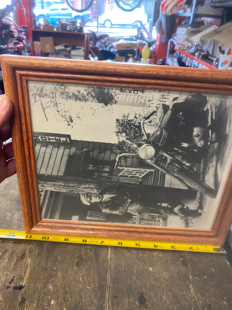 Marlin Brando Wild Ones Framed Picture Triumph Motorcycle Shop Movie 9x11 Vtg was hanging in a motorcycle shop for decades!