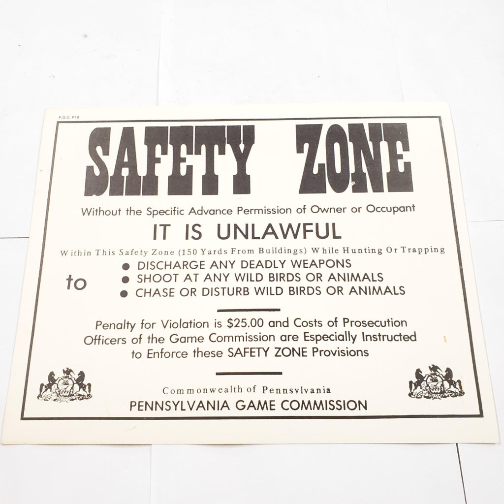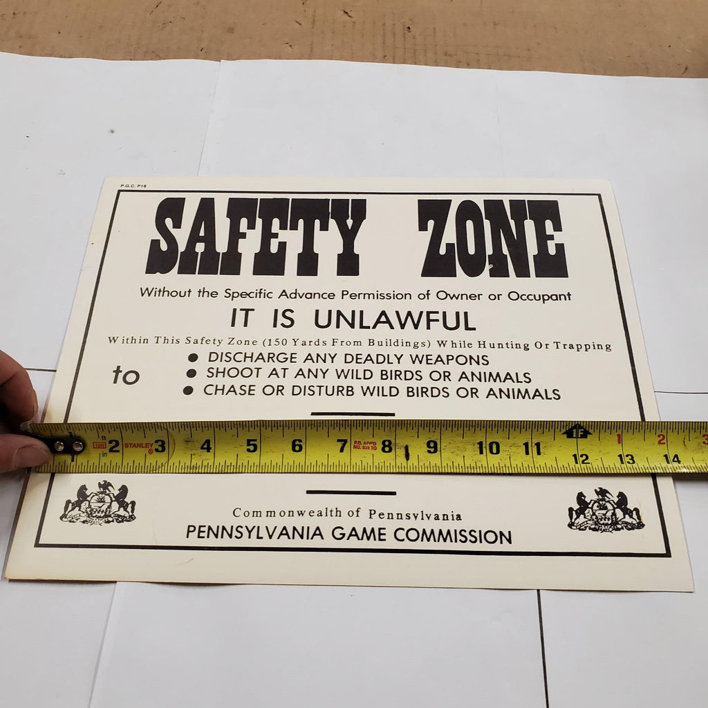New VTG PA Game Commission Safety Zone 11"x14" Sign Poster Mancave Hunting Decor.