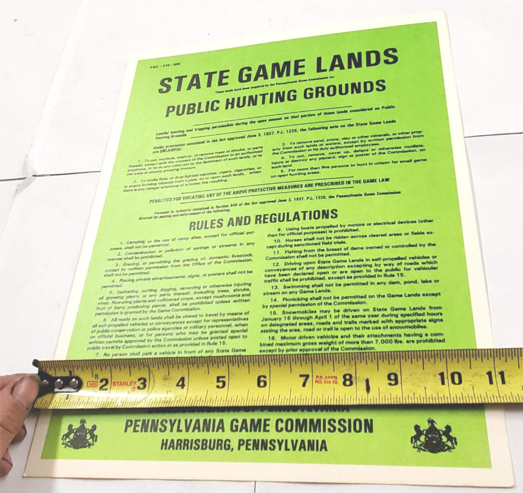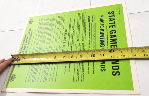 New VTG Pa State Game Commission Green "Game Lands Public" Hunting Aug 1982 Sign