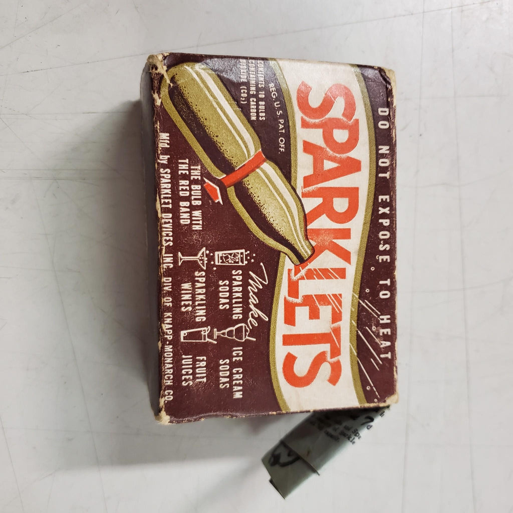 New Vtg Sparklets Carbon Dioxide CO2 10 ct Bulbs Box Beverage Drink Product WWII Collectible.