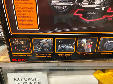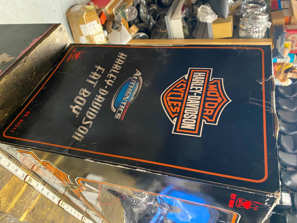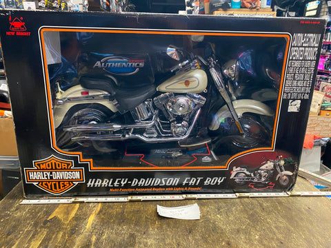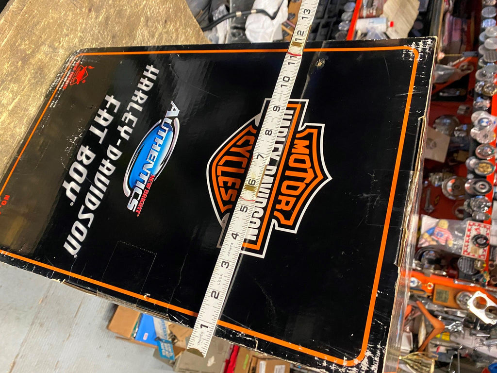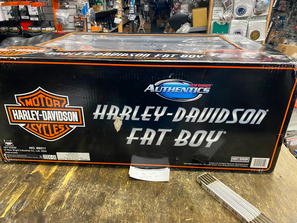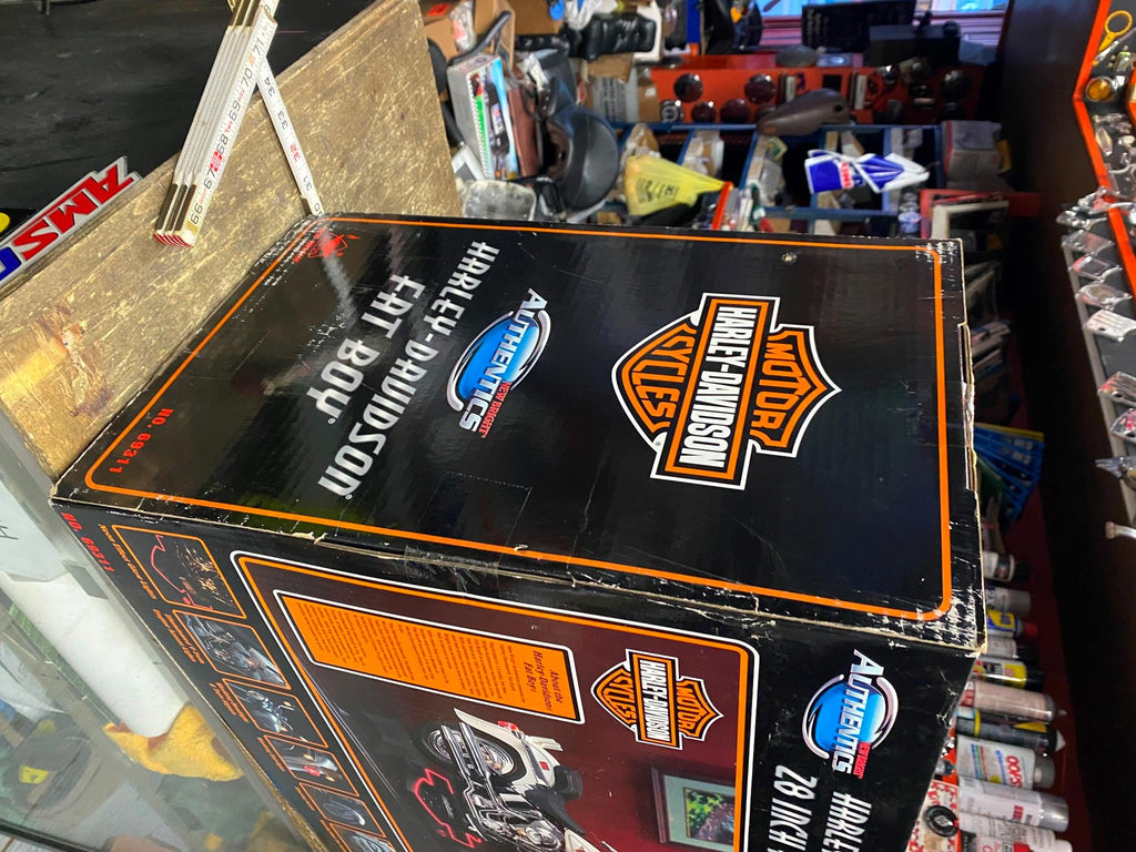 NIB 28" New Bright Authentic Harley Fatboy Automated Replica Sound Lights Display stand built in, box has never been opened bought in early 2000's alot of details right on box.This is not the rc one!