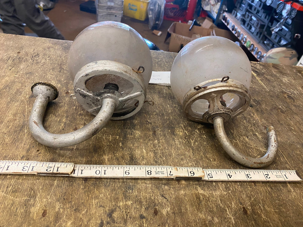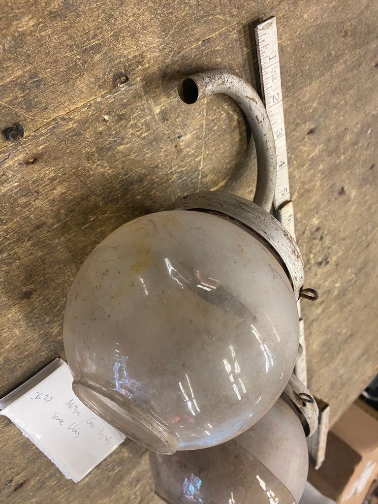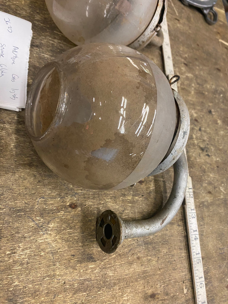 Pair Gas Light Lamp Sconse Victorian 1900's Globe Wall Antique Fixture Orig Glass Would make a nice display or can wire them up for regular lighting..... amazing the glass survived 100+ years!!! have some other vtg light fixtures listed!