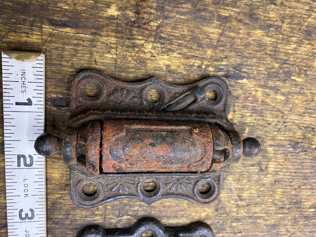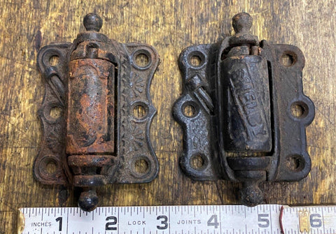 Shelby antique cast iron screen door spring hinges Fancy Victorian Antique Hardware one is a shelby one is not pretty close but not identical.