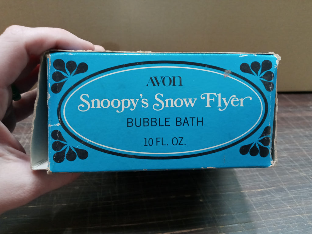 Vintage Avon Snoopy Bubble Bath Snow Flyer Bubble Bath W/Box 1972 Red Sled 10 oz