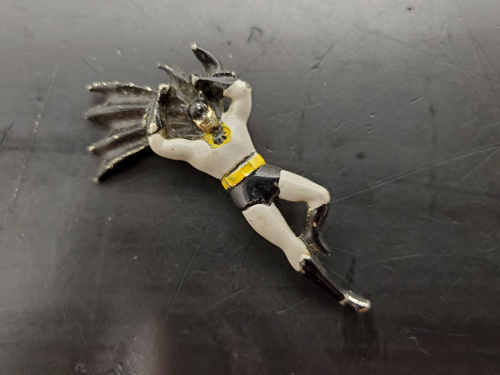 Vintage Batman Brooch Pin Enamel DC Comics Very Rare Black Gray Yellow 1966 Nice