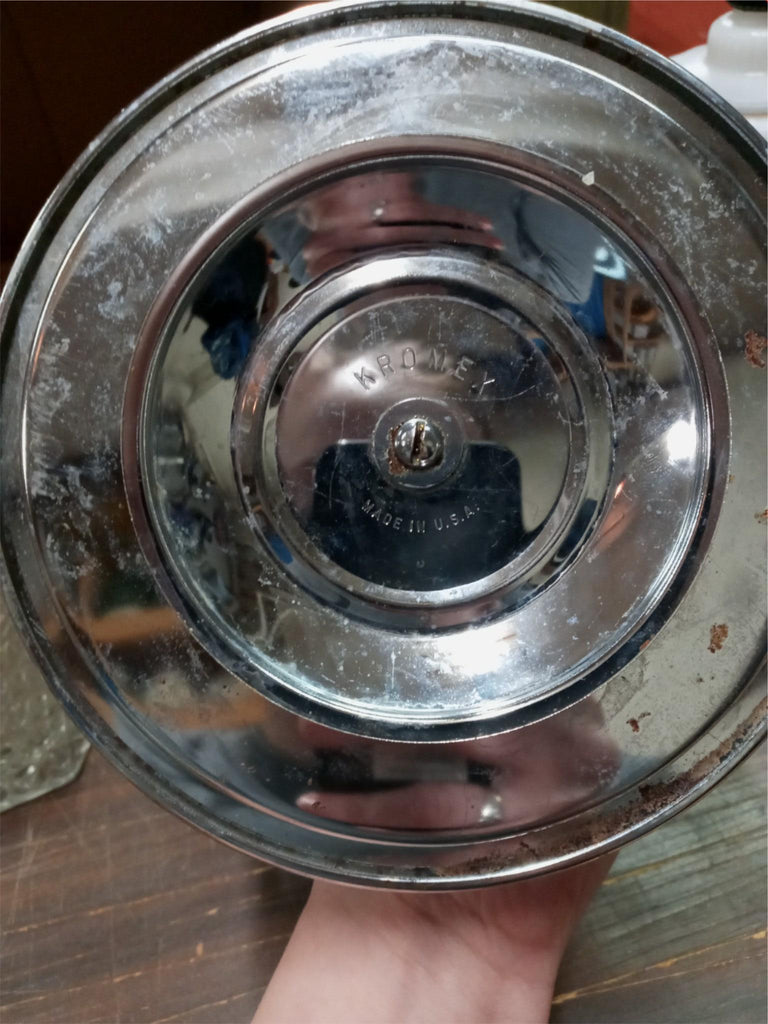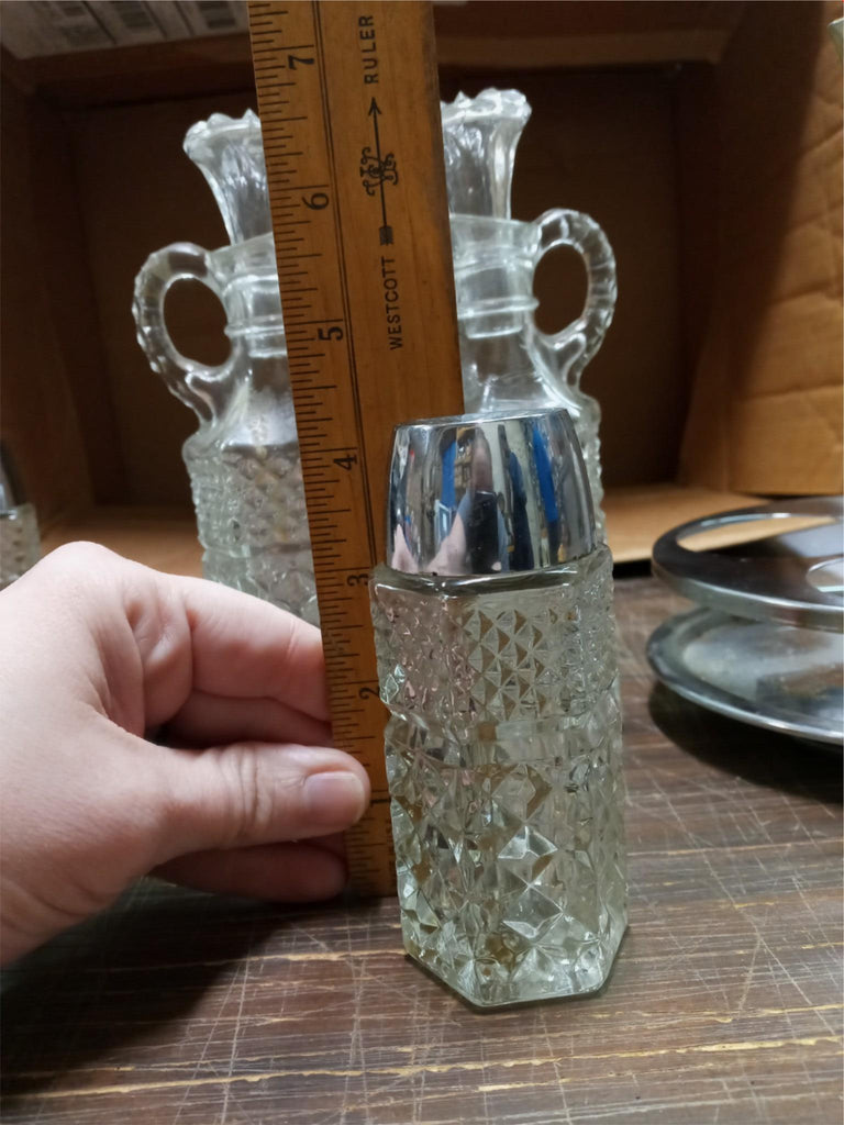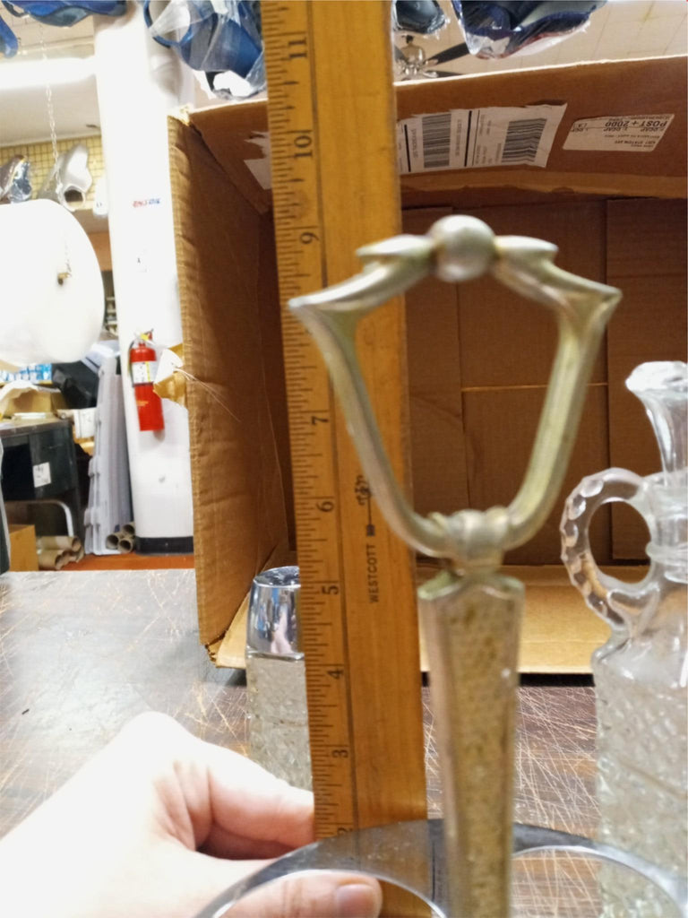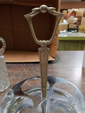 Vintage Kromex Holiday Cruet Set With Stainless Steel Turn Tray Heavy-Cut Glass