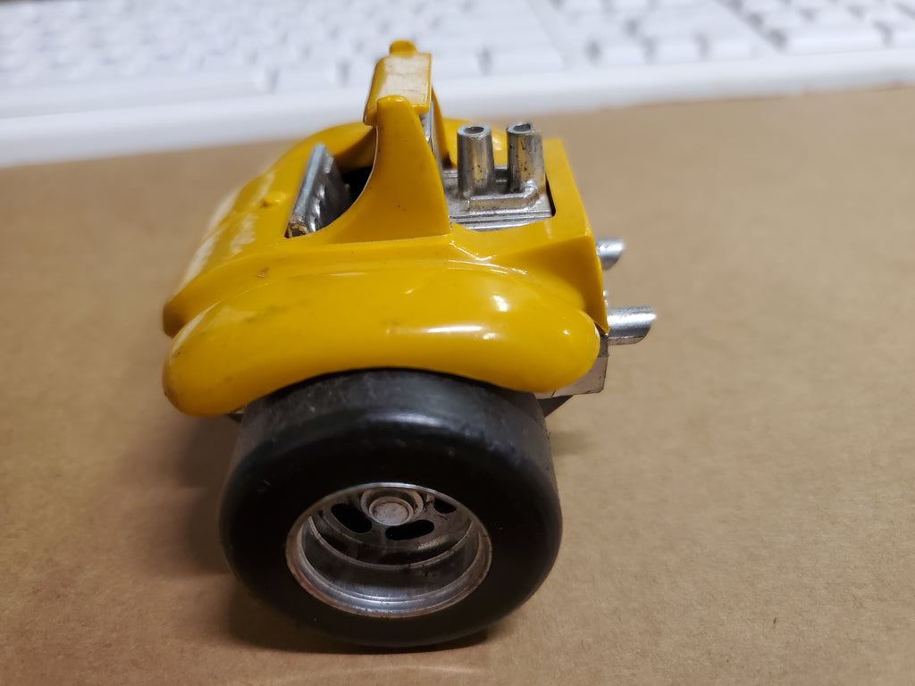 Vtg 1971 Structo USA Weird Wheels 2-Wheeler Yellow Chrome Hot Rod Metal Diecast