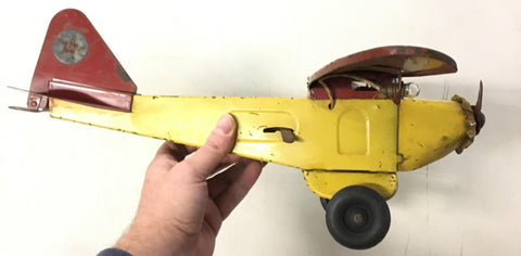 Vtg 1930s Windup Steel Katz Tin Toy Airplane Litho Lights Battery 20" Steelbilt Nice survivor.