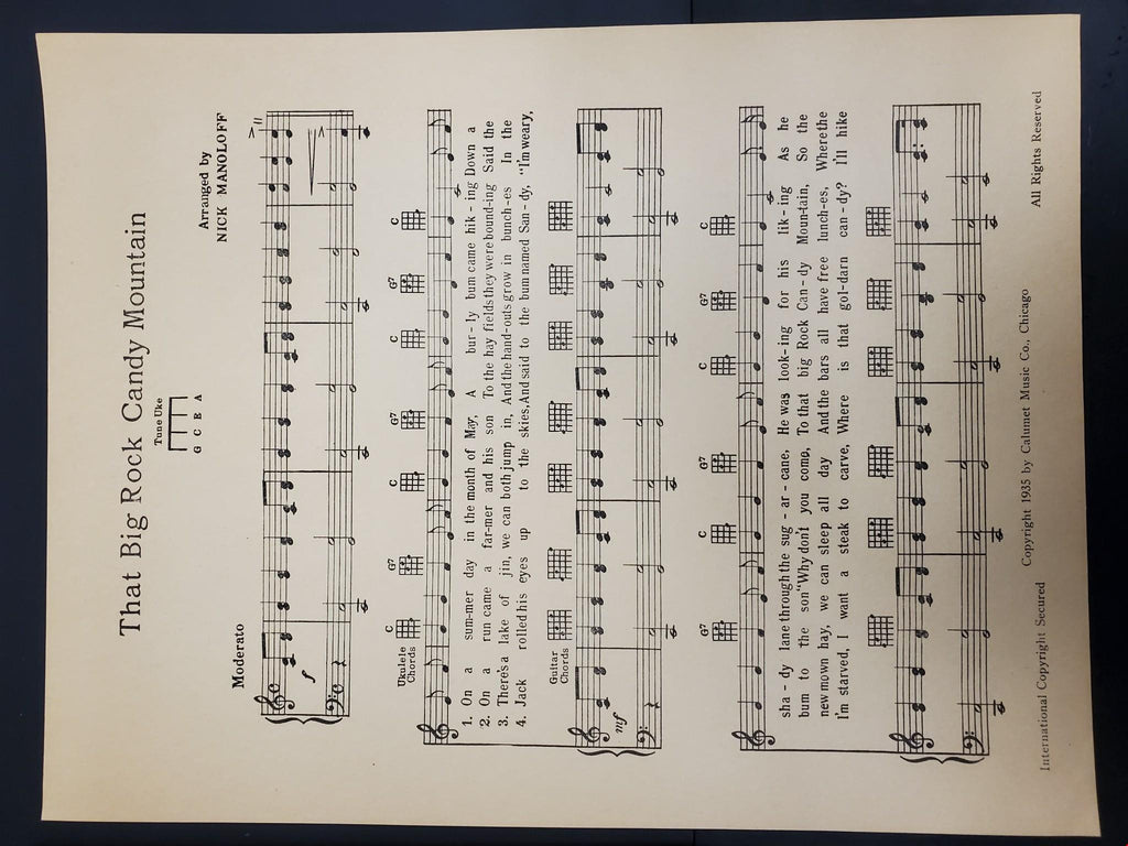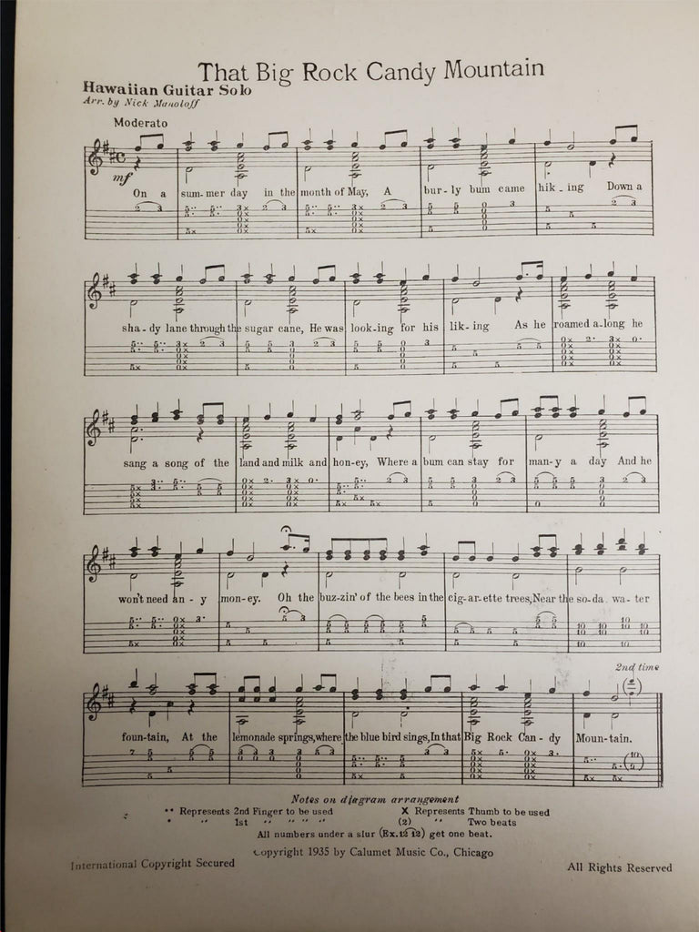 Vtg 1935 Calumet Rare Sheet Music Big Rock Candy Mountain Hawaiian Guitar Solo