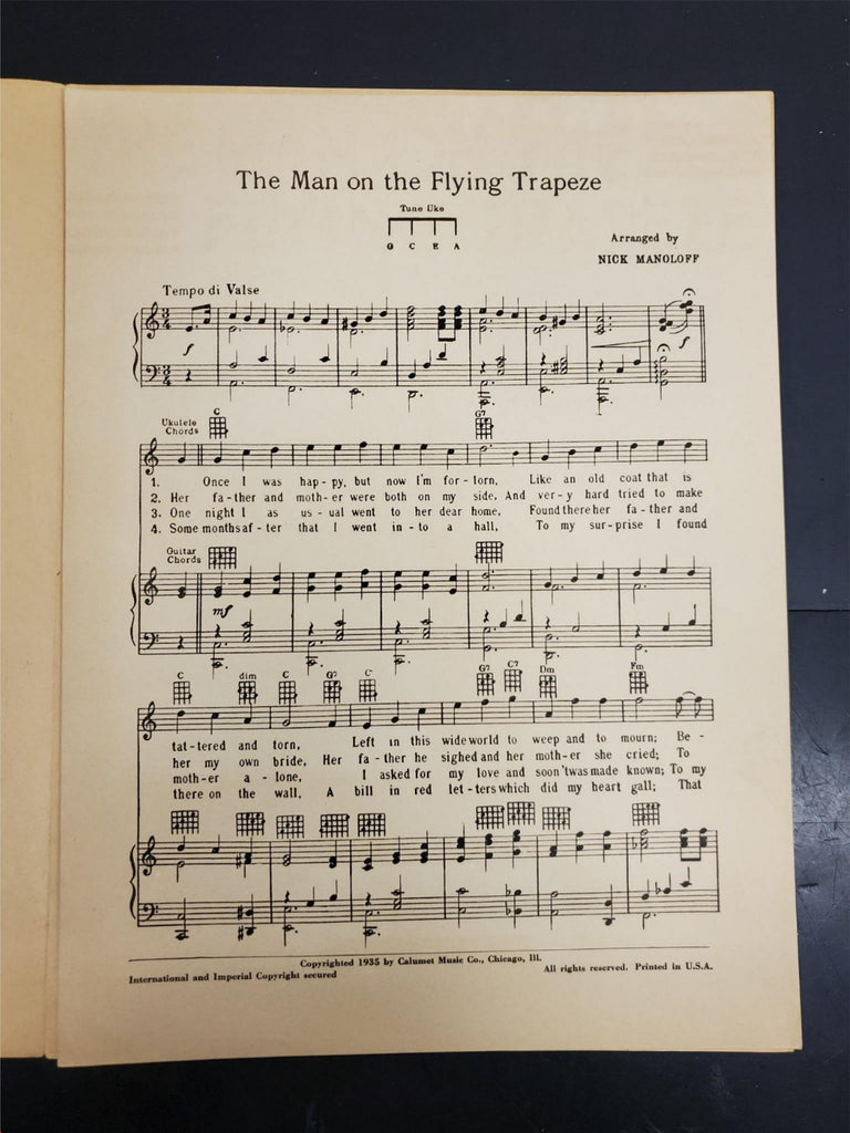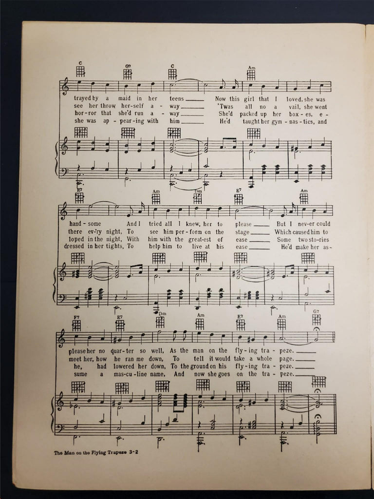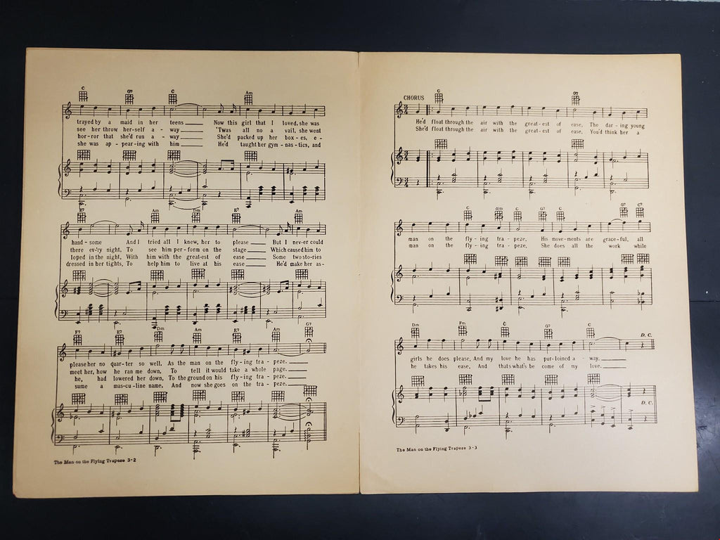 Vtg 1935 Sheet Music Post Great Depression The Man On The Flying Trapeze Ballad
