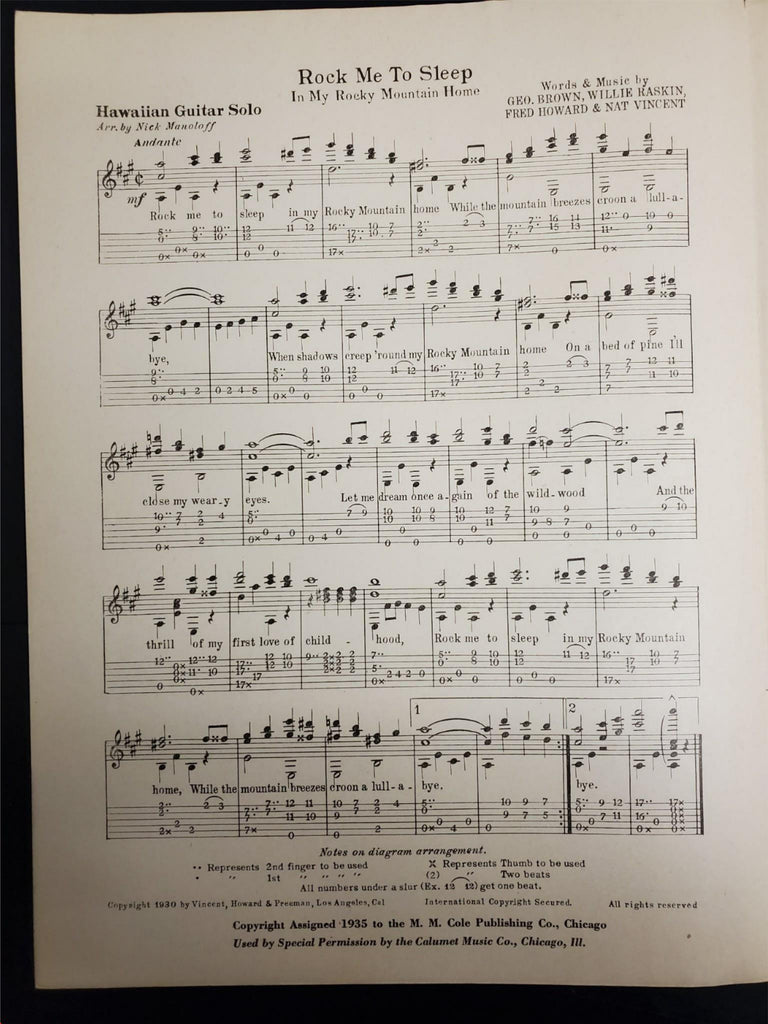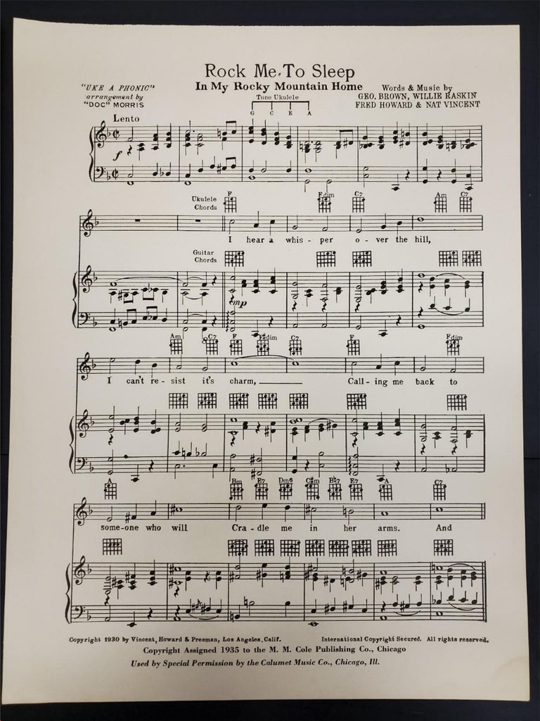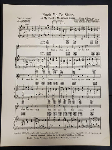 Vtg 1935 Rock Me To Sleep In My Rocky Mountain Home Hawaiian Guitar Sheet Music