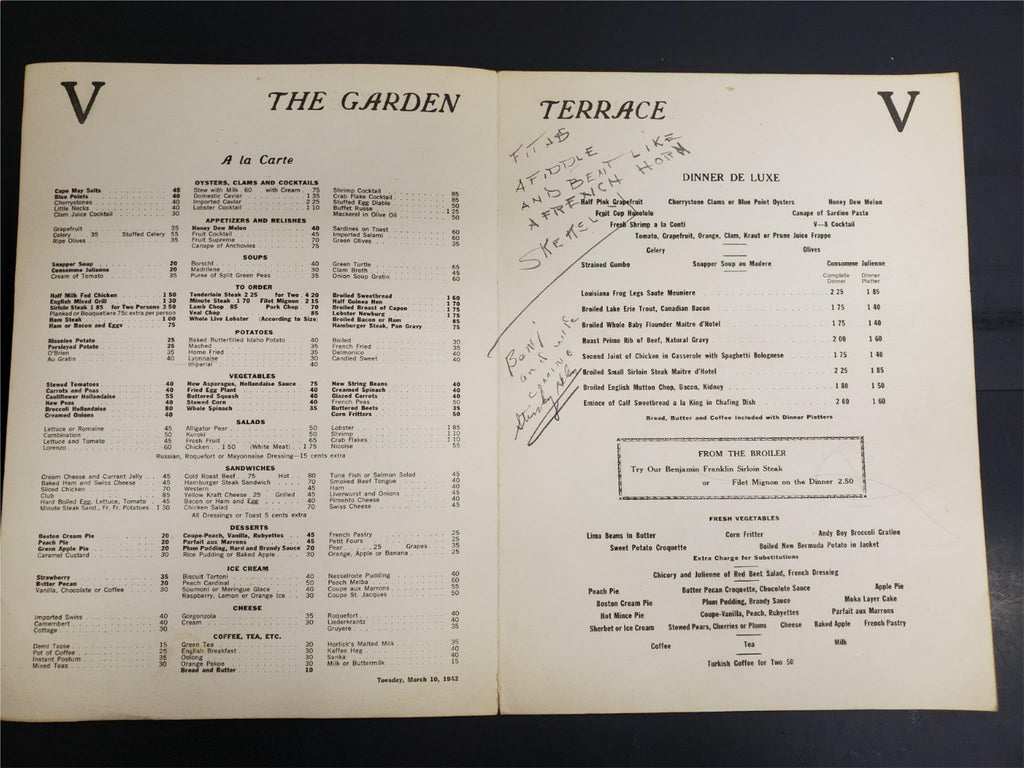 VTG 1945 WWII Benjamin Franklin Hotel Garden Terrace Restaurant Ration Menu Circ