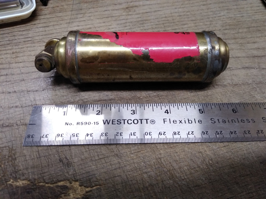***PLEASE LOOK AT ALL THE PICTURES AND ASK QUESTIONS BEFORE BIDDING*** This is a Vintage 1940's-50's Presto CB Mini Brass Motorcycle Fire Extinguisher 5.5"! *** The pictures are a substantial part of the description so please examine all the photos and contact me if you have any questions. We will be happy to save you shipping costs by picking this up at our shop. Thank You 042125- RK-04