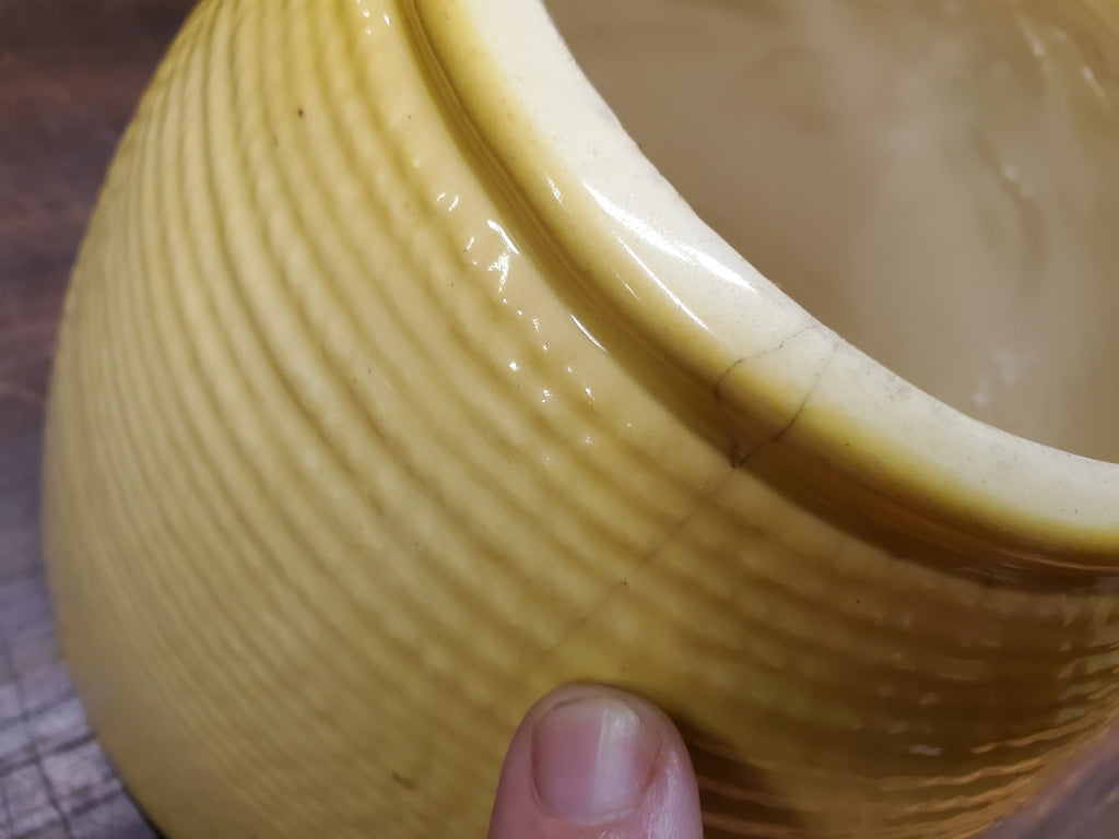 Vtg 1950S American Bisque Yarn Girl Doll Cookie Jar Yellow Pink & Blue Collectible