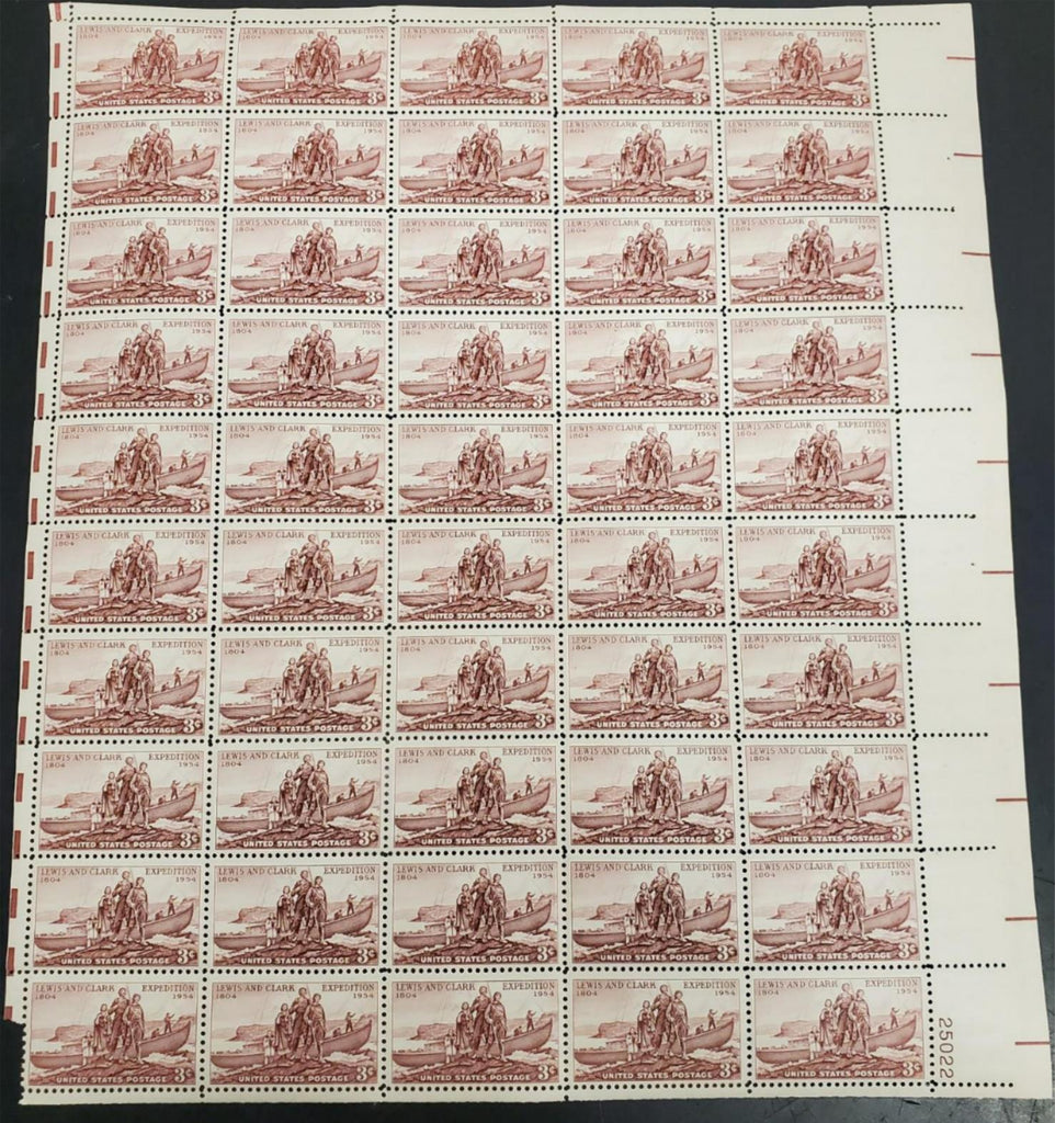 Vtg 1954 Lewis & Clark Expedition 3 Cent USPS Postage Stamp Sheet 50 Total MNH