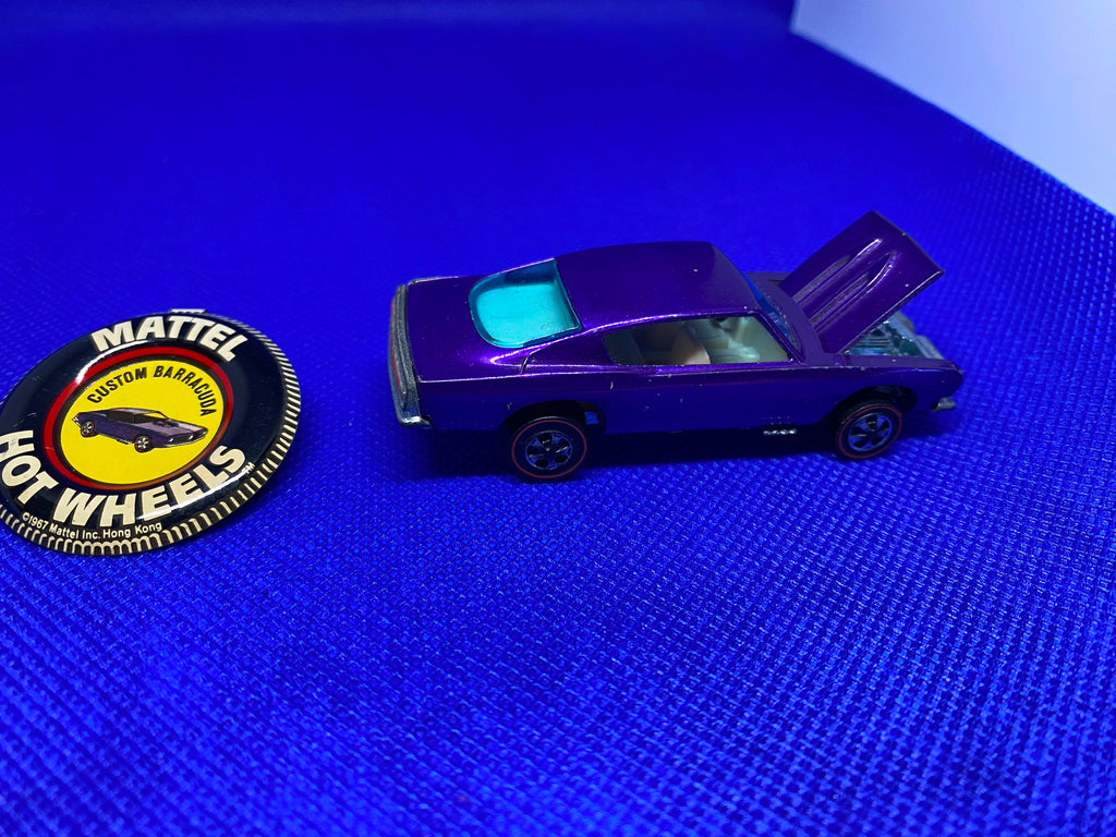 Vtg 1968 Hot Wheels Redline Custom Barracuda car purple body Minty W Badge!
