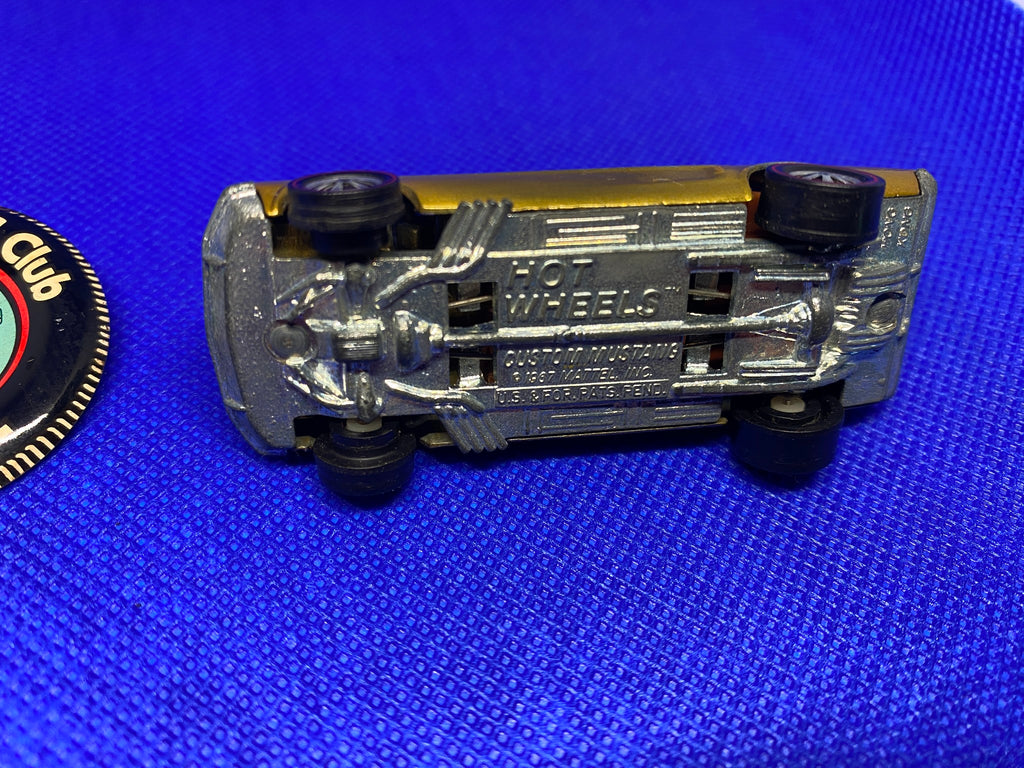 Vtg 1968 Hot Wheels Redline Custom Mustang Fastback gold Hood opens Minty Badge!