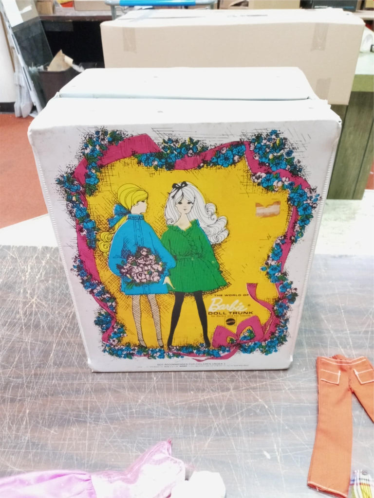 Vtg 1968 Mattel Barbie Doll Trunk #1004 & Barbies W Clothing & Accessories