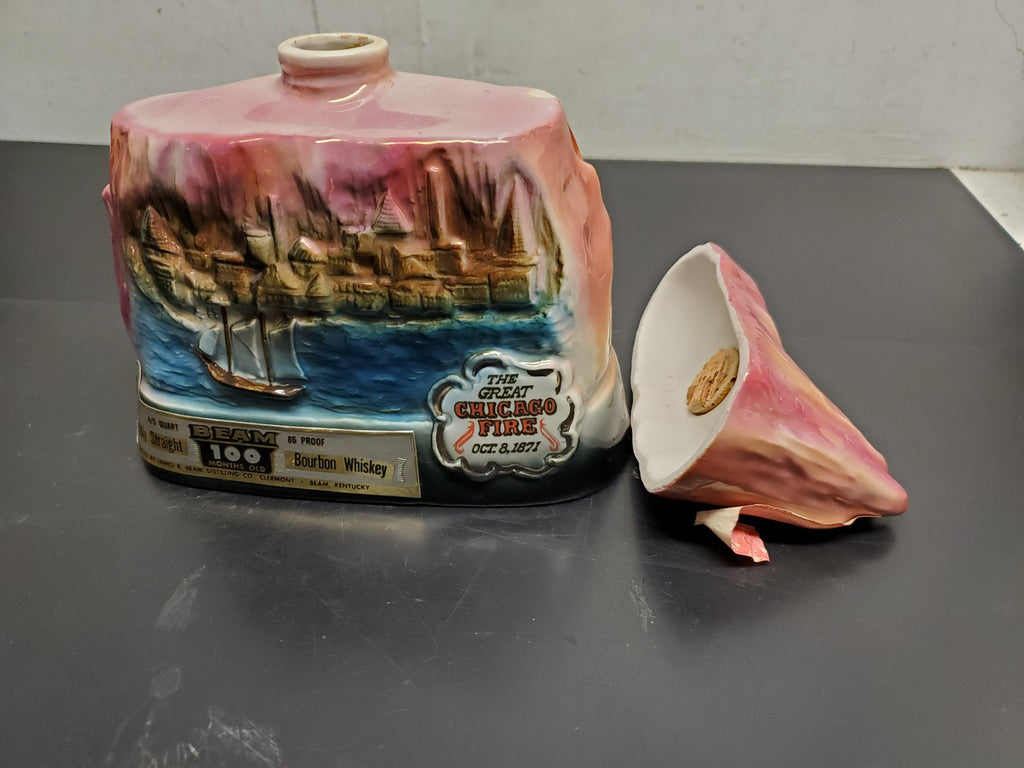 Vtg 1971 Empty Jim Beam Great Chicago Fire Oct. 8,1871, Whiskey Decanter Bottle