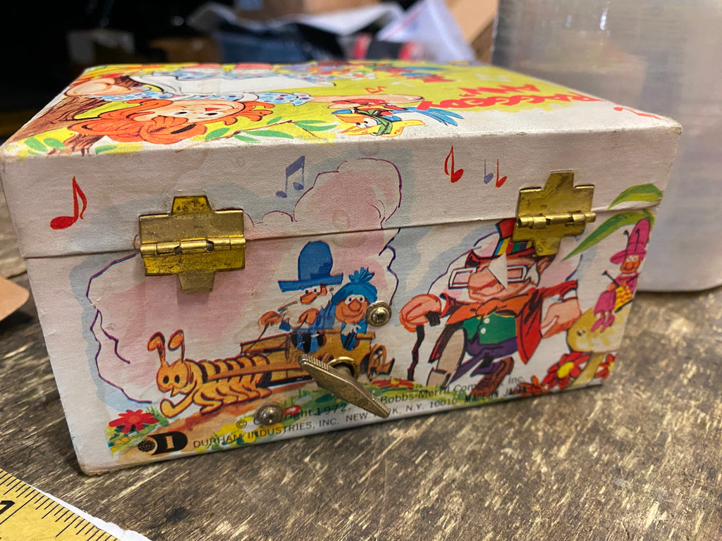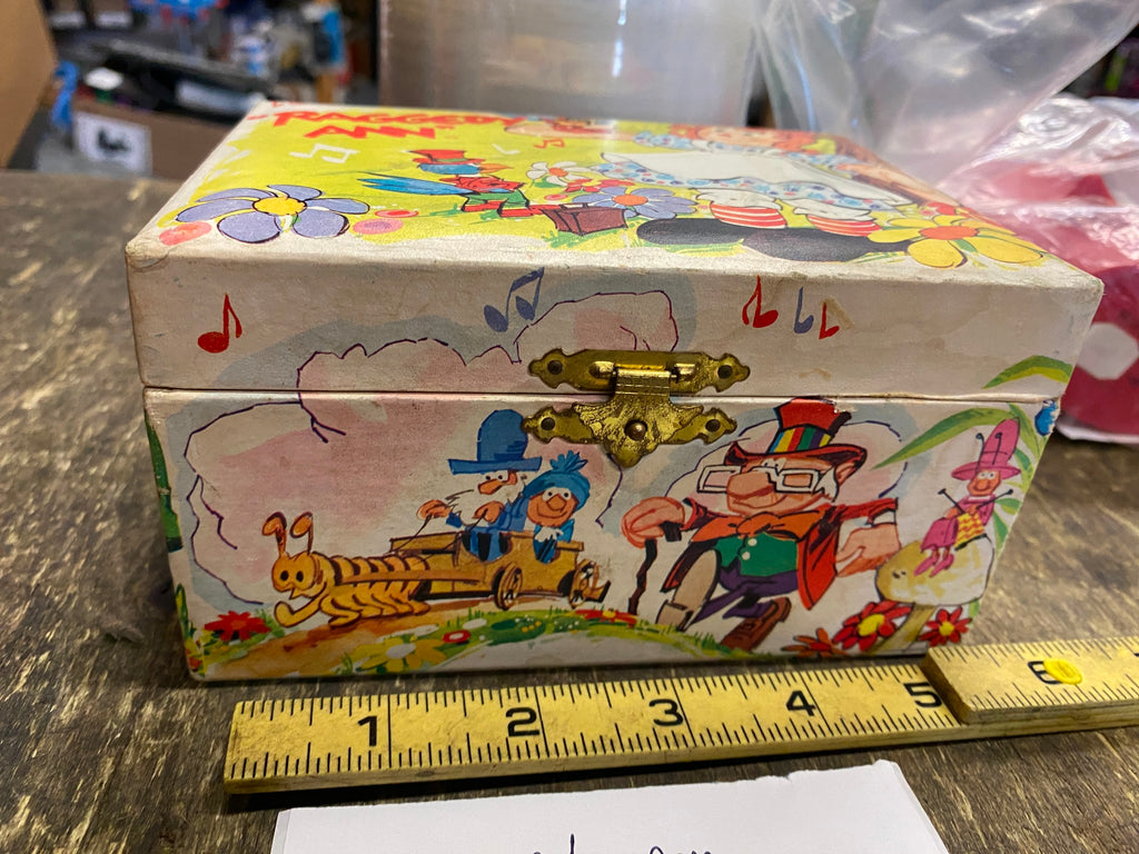 Vtg 1972 Raggedy Ann Andy Music Collectible Toy Jewelry Stash Box! of course its overwound didnt really mess with it, may be able to fix if not great display! Gf decided to sell off some of her raggedy ann collection never took watch out of case just had it on display have a bunch of raggedy ann & andy stuff listed!