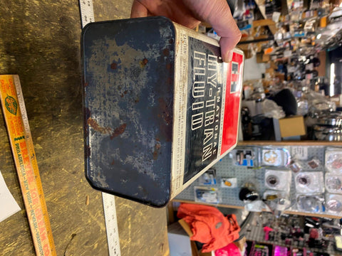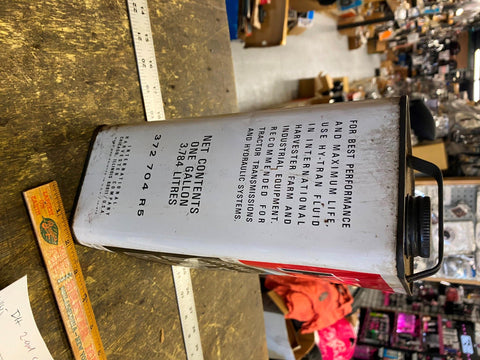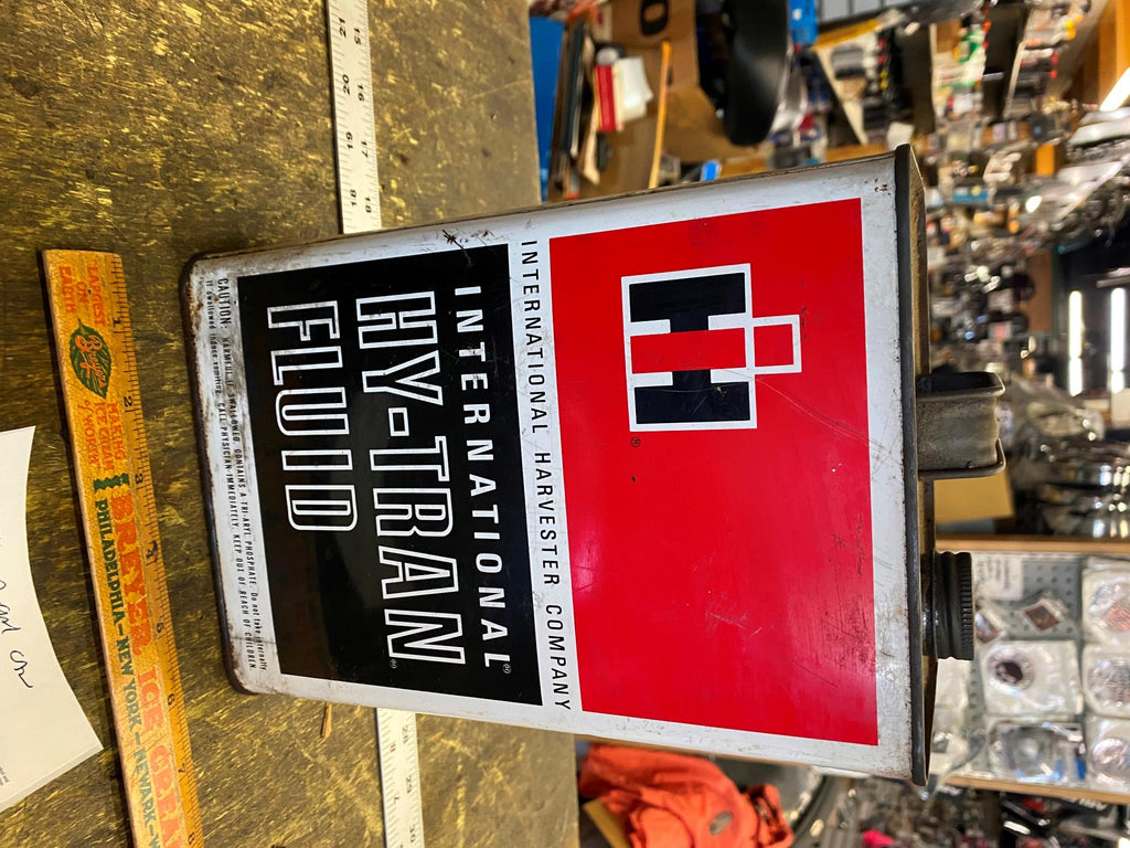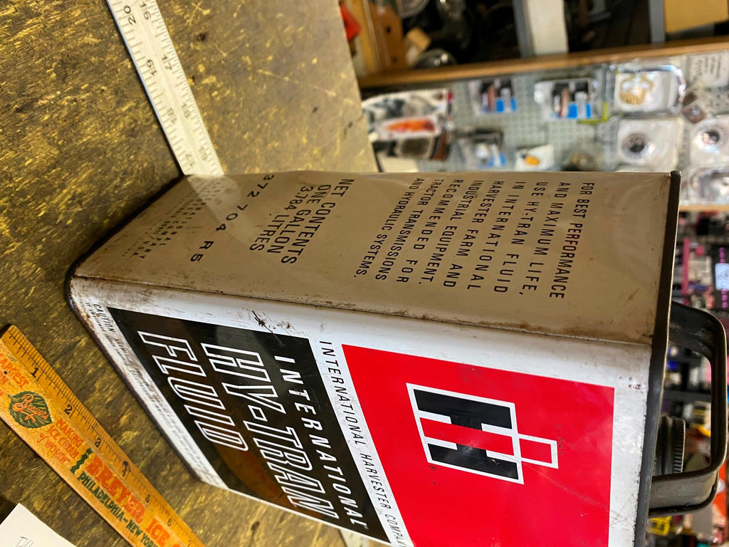 Vtg 2 gallon OIl Can International harvester Hy-tran fluid tin IH Tractor Farm