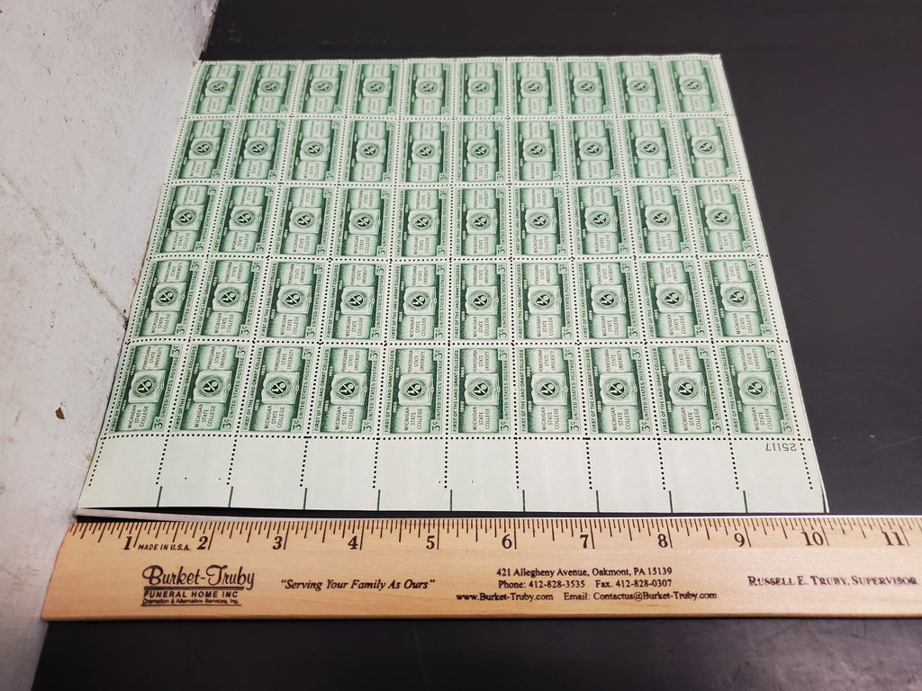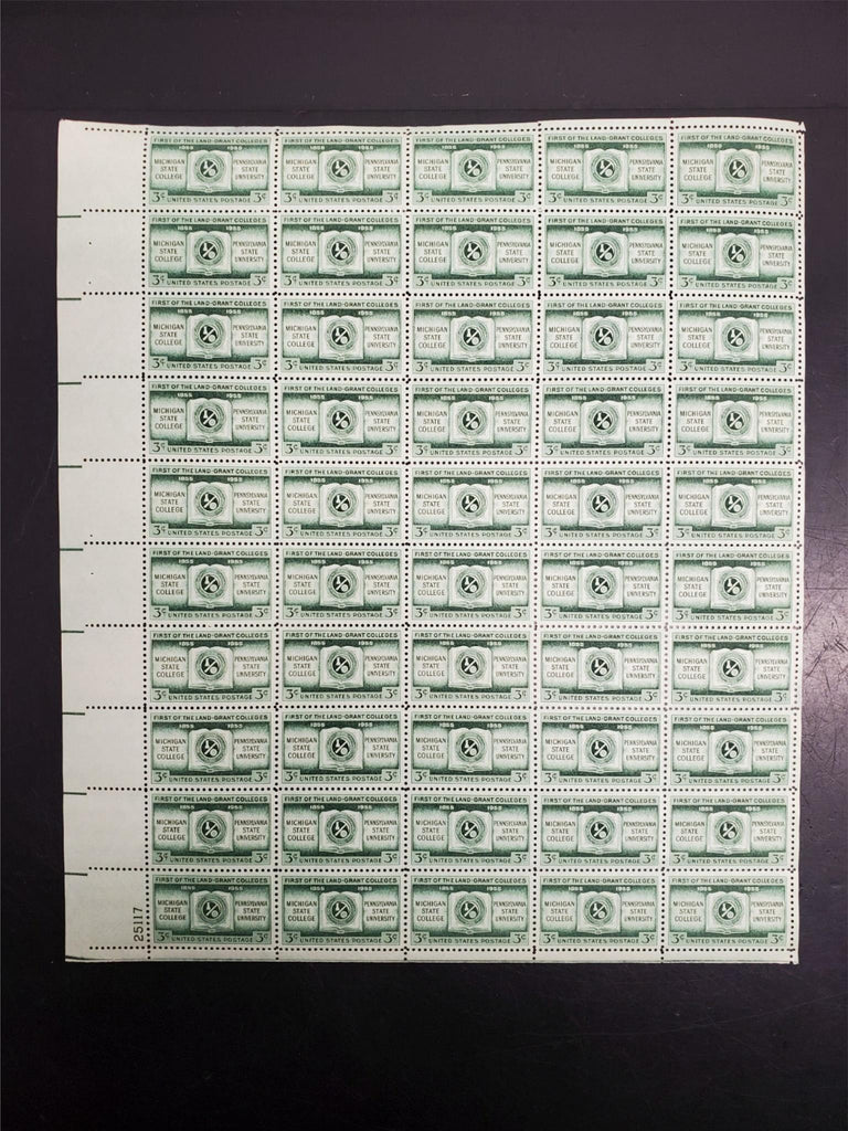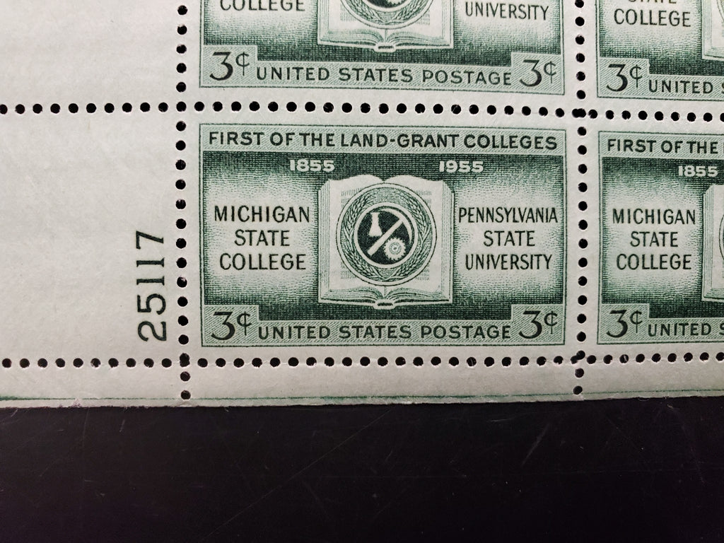 Vtg '55 Michigan State Penn State University 3 Cent USPS Postage Stamp Sheet 50