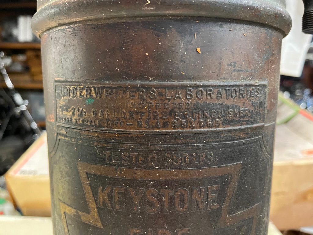 vtg Antique brass & copper Keystone Fire Extinguisher James Boyd & Bro Philli PA