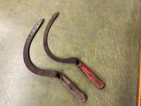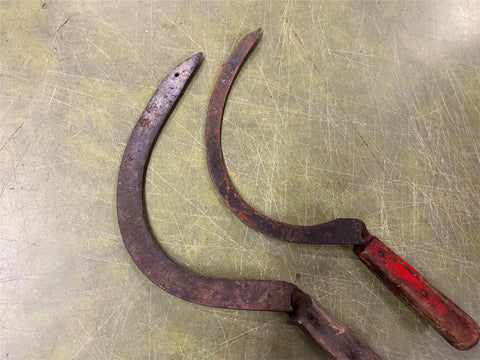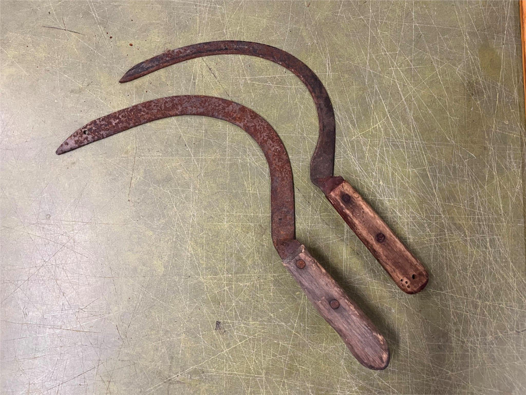 Vtg Antique Early 1900s Lot Of 2 Sickle Farm Tools Wood Handled Barn Decor