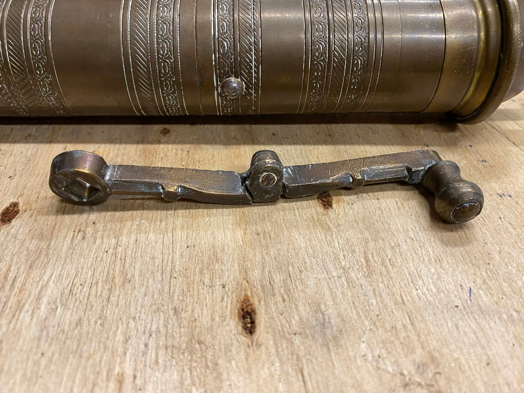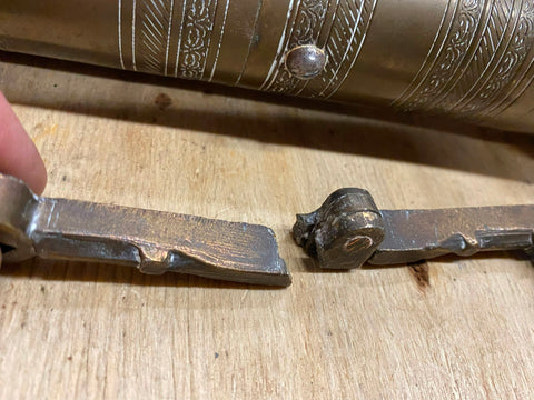 Vtg Brass Salt Pepper Mill Spice Grinder Made In Greece Collectible Great Gift. Needs some Tlc. The handle broke, and needs repaired, really nice old detailed piece! would be beautiful all polished up!!!