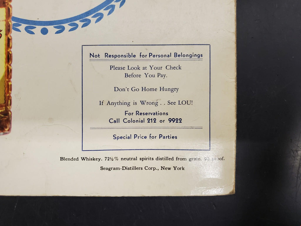 Very unique Restaurant Menu from the 1930's-1940's.