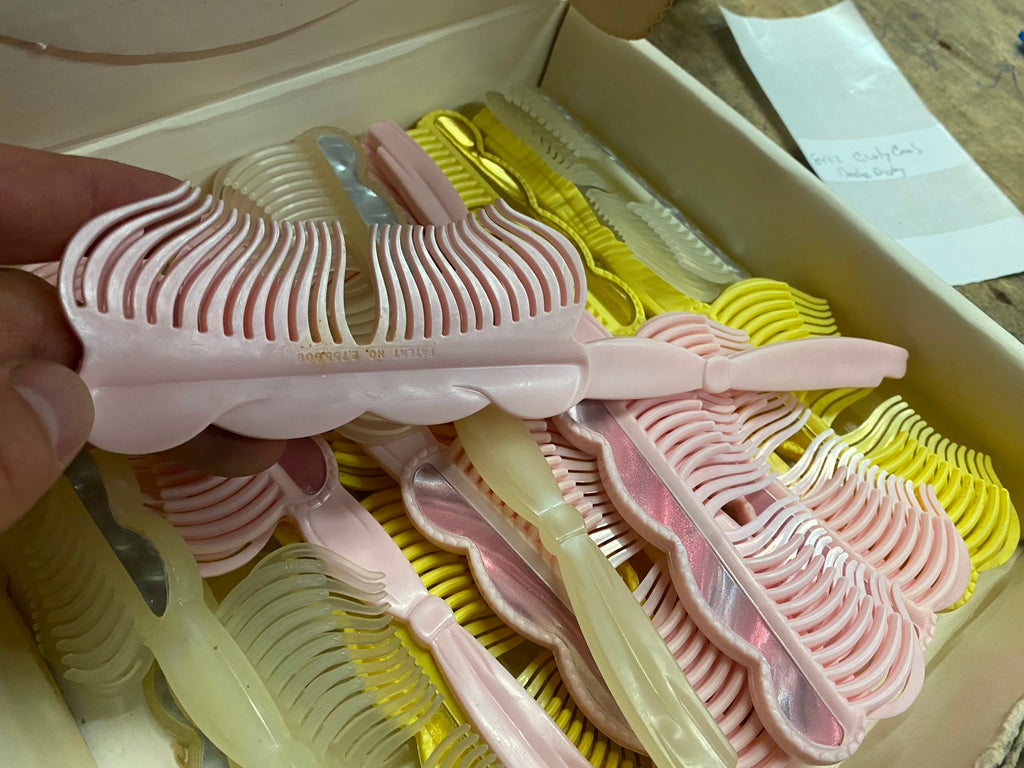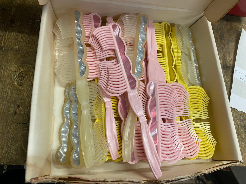 Vtg Store Display Curl combs Orig Box counter Department Beauty Hair brush 1950's  selling one brush, can pick a color, if you dont tell us well pick a color for you....  will sell the display when we get low on them....